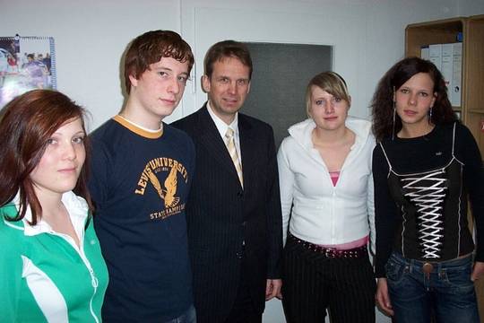 Ministerpräsident Althaus mit den Schülern