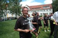 Auch gab es wieder ein Fußballspiel des Prominententeams um Ministerpräsident Dieter Althaus gegen die Werkstätten- und Heimauswahl. Bis in die zweite Halbzeit führten die Promis. Aber dann wurde die Ziviverstärkte Werkstättenmannschaft immer stärker und hielt ein 6:6 bis zum Abpfiff. Die Gastgeber verteidigten also den Pokal, und die mehr als fairen Gäste erhielten Kerzen als Trostpreise.